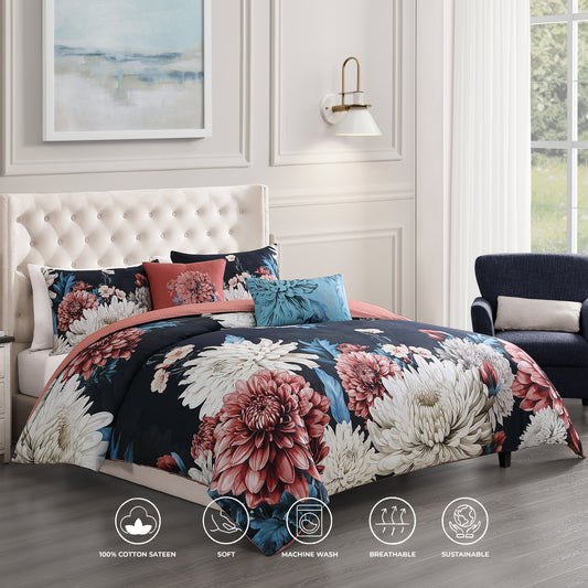Bebejan Navy Mums 5 Piece Reversible Comforter Set