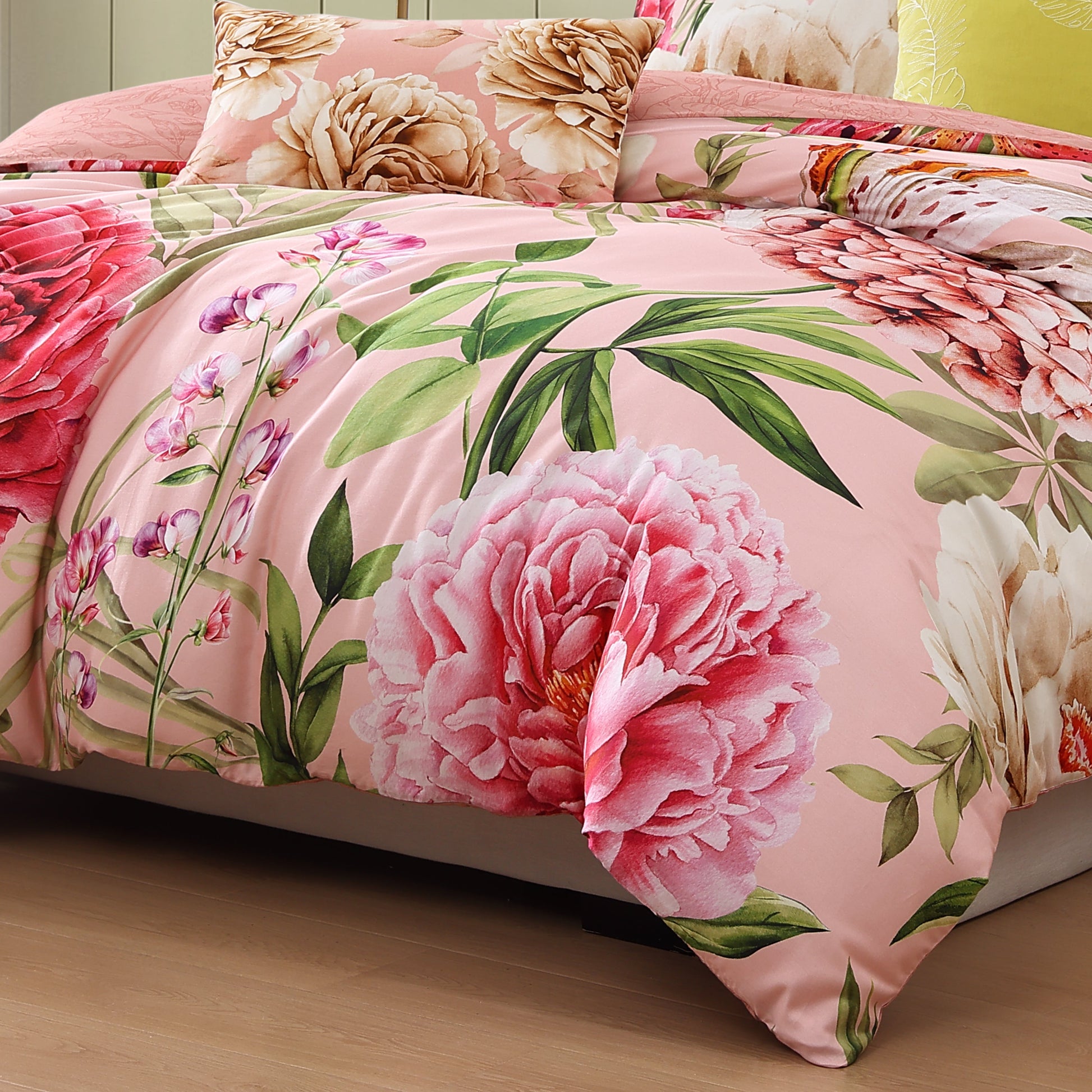 - Comforter Front: Bountiful pink flowers and green leaves on front will make you feel like you are in a never-ending spring garden